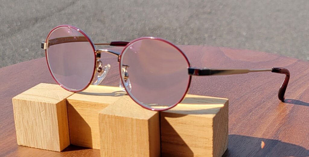 肌馴染みの良い綺麗な赤色のフレームでまんまるに近い可愛い形のフレームです