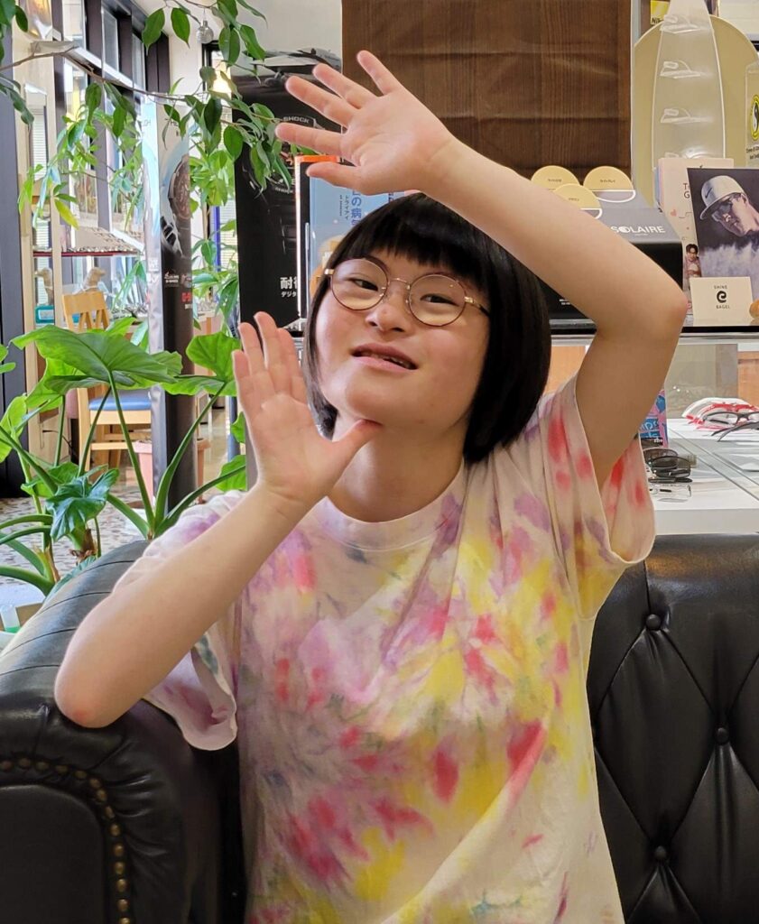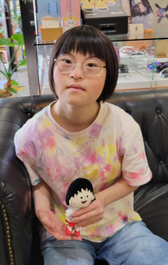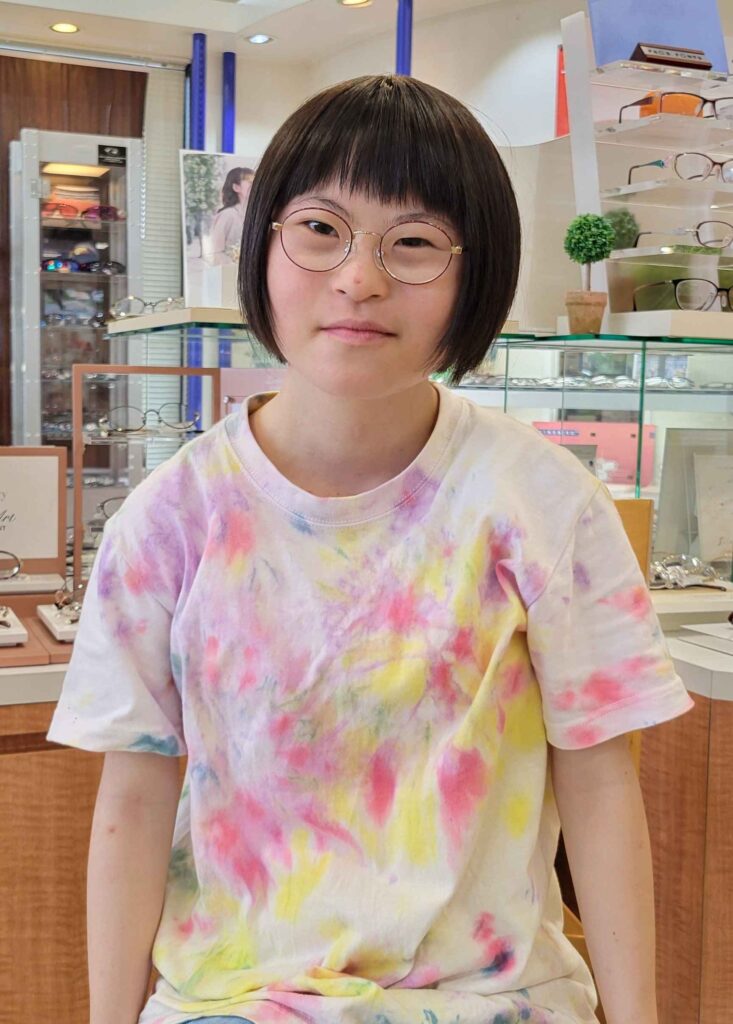 前メガネはピンクとホワイトのコンビカラーフレームでしたが、今回はスッキリラインのまんまるメガネでお姉さんにイメージアップして頂けました✨