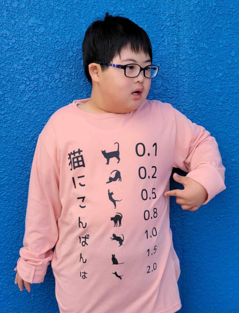 今回のTシャツもご自分で選んで頂いたそうですがメガネ屋さんに行くからと視力検査表のようなデザインの服を選んで頂けました♬