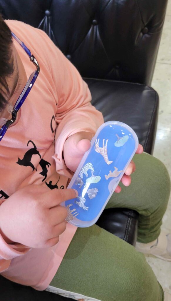 新しいメガネお渡し前の調整中、お待ちの間にメガネケースにシールでデコレーションして頂いてました( *´艸`)♡