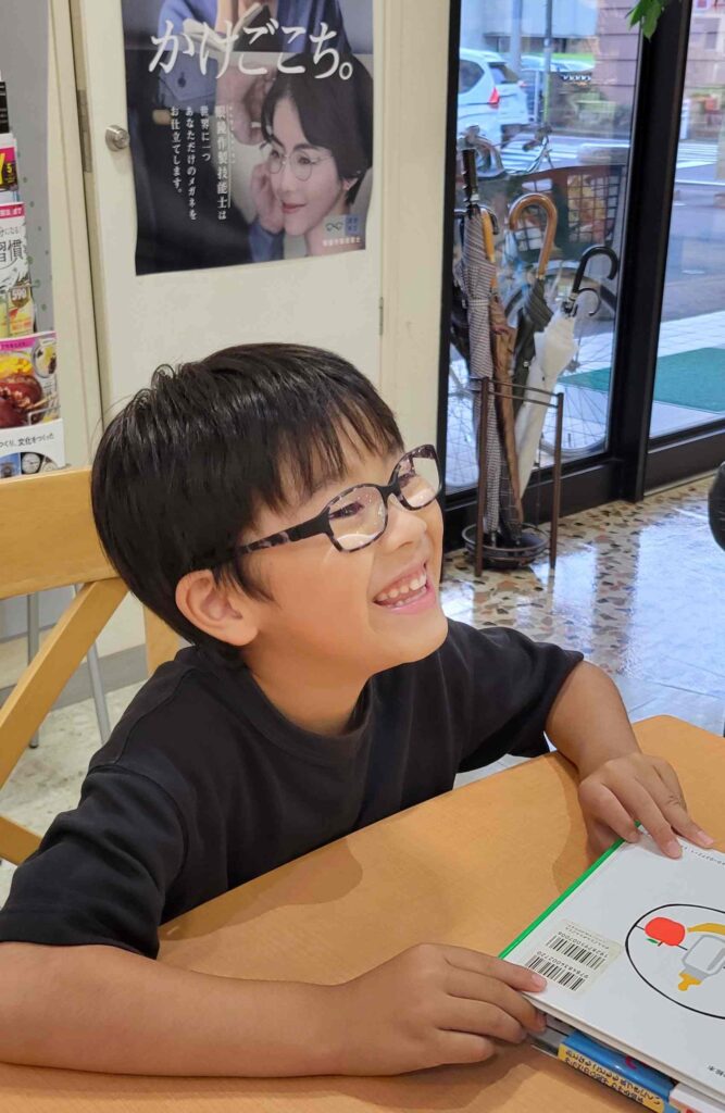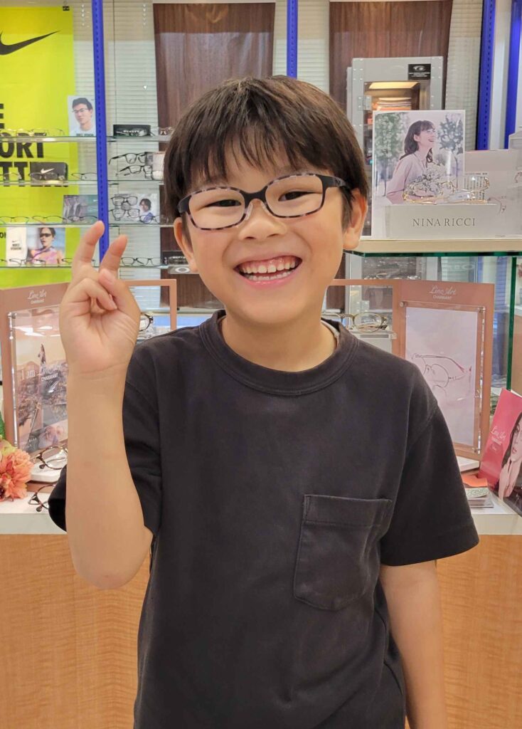 前回と今回お作り頂いたフレームは同じブランドで同じ形でしたのでイメージは大きく変わりませんでしたが、少しずつお顔もお兄さんになられて来られててまたまたご成長を感じる嬉しいスタッフでした( *´艸`)♡
